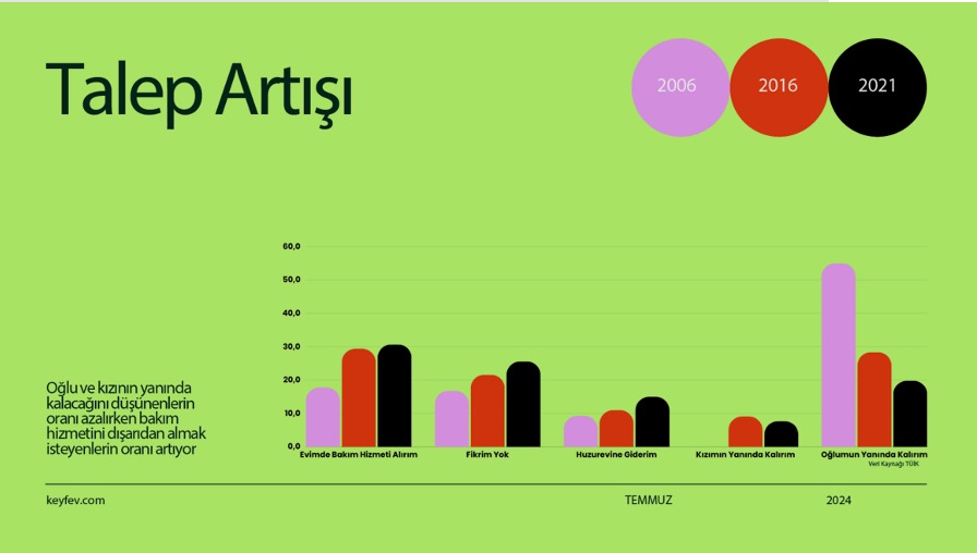 Türkiye’de 65+ nüfusun payı her yıl artıyor. TÜİK kaynakları bu artışın önümüzdeki yıllarda da süreceğini gösteriyor. Ancak bilgi dağınıklığı, farklı kriterlerin aynı anda karşılaştırılamaması ve doğru kurumla temasa geçme sürecinin belirsizliği, ailelerin kararını zorlaştırıyor.